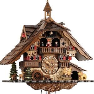 En ambos estilos tendrás la posibilidad de elegir un modelo musical o no. En el caso de los relojes de cuco del chalet musical, todos los personajes cobran vida: el leñador corta leña, el bebedor de cerveza se lleva la jarra a la boca, los niños se balancean en sus columpios y las bailarinas giran al ritmo de la música.