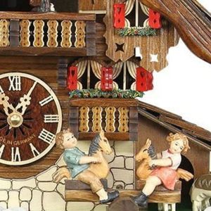 El reloj está equipado con un movimiento original de 8 días desde la región del Bosque Negro y necesita darle cuerda una vez por semana. Este magnífico chalet de prado es una auténtica pieza artesanal y además junto con su compra viene un certificado de autenticidad emitido por la prestigiosa Asociación de relojes bosque negro.